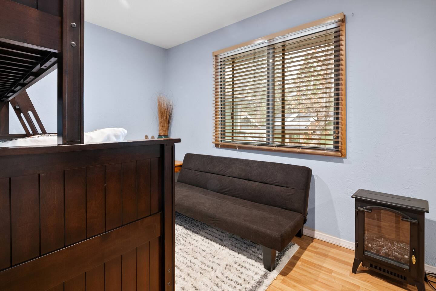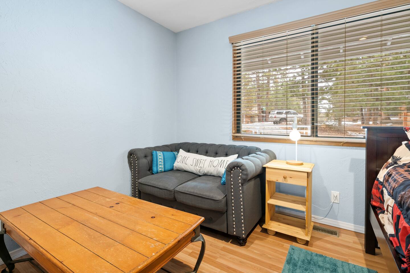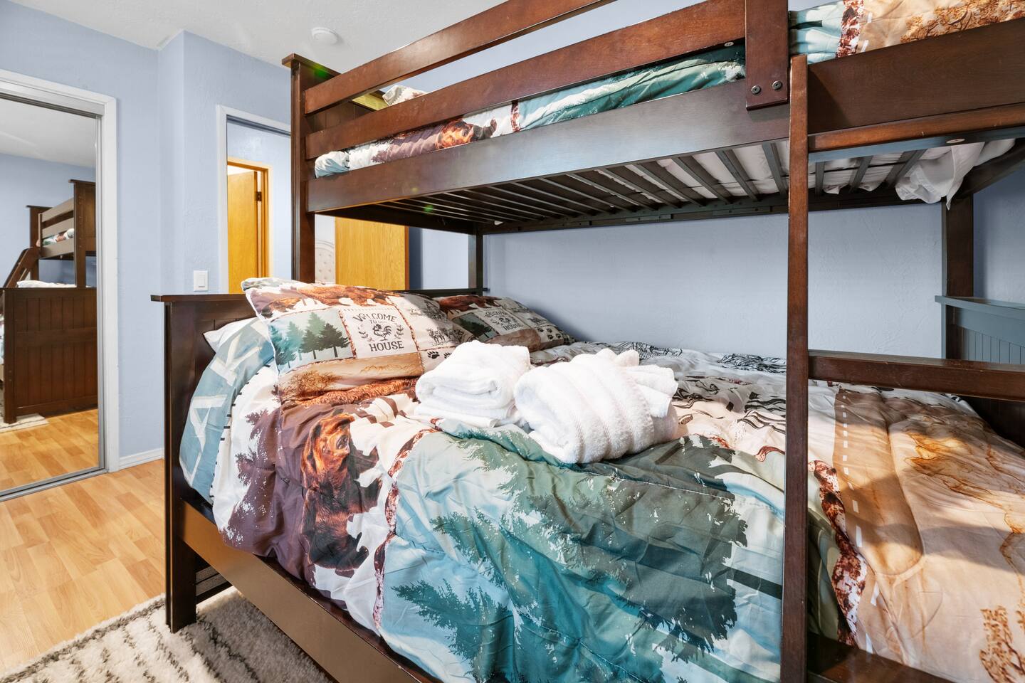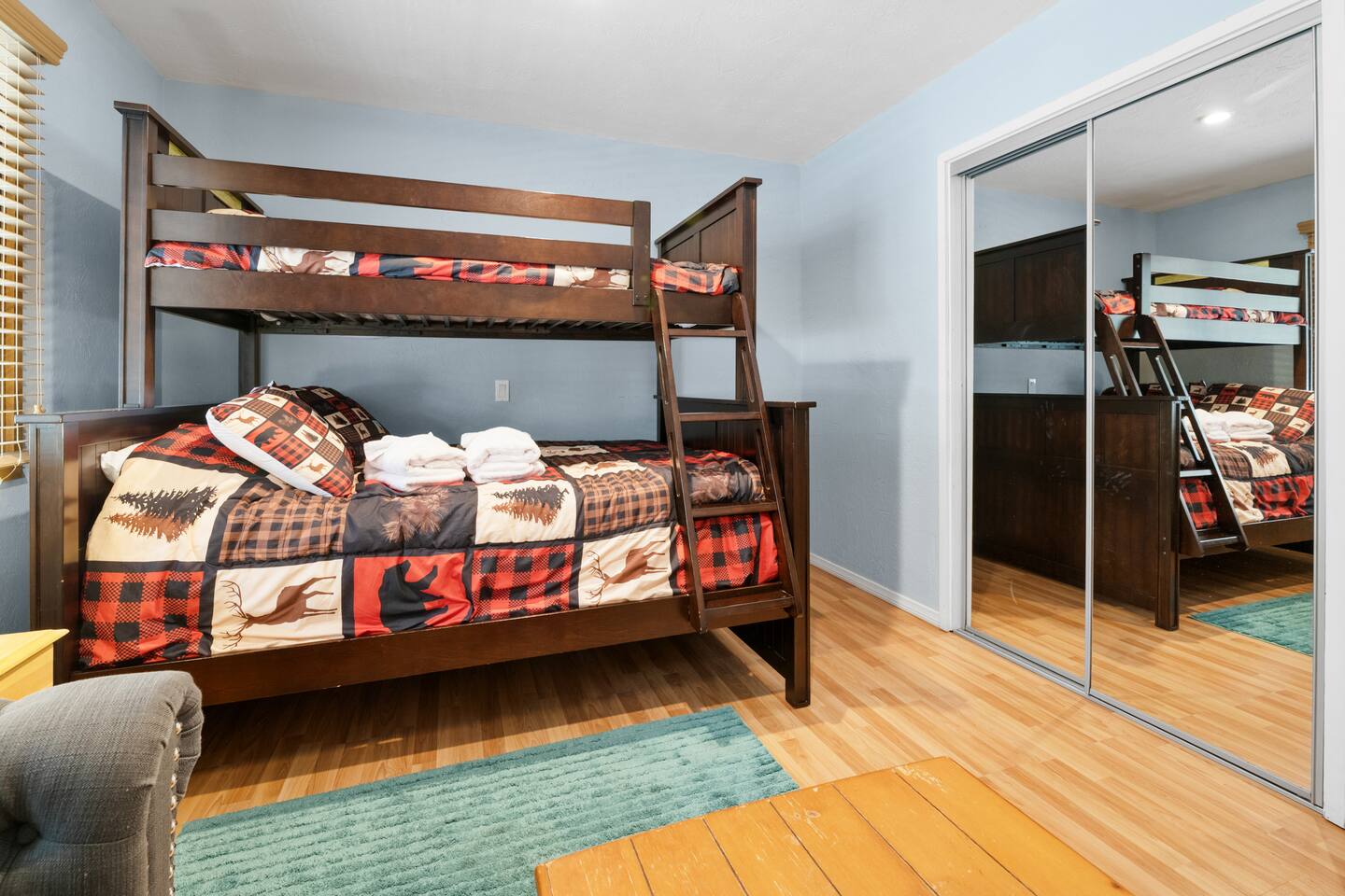 Please note that City of Big Bear Lake considers infants as part of total guest for maximum occupancy. We are only allowed to have maximum 7 people per booking. Here Are A Few Kind Words From Our Past Guests: “I couldn't ask for a more thoughtful host. The location is central to everything and the home is literally stocked with every need imaginable.” - Jennifer “One of the best experiences I’ve had staying in an Airbnb.” - Jazmine “Bathrooms impeccably clean, plenty of hot water and even the odds and ends one may have forgotten.” - Alex ☆☆ BEDROOMS ☆☆ The cottage has three bedrooms, with five beds in total to accommodate up to 7 guests. The master bedroom includes a king-sized bed with a high-end mattress, comfortable linens, and fluffy pillows. Use the large closet to unpack your wardrobe, and should you be traveling with your little bundle of joy, a Pack-N-Play is available. The room offers direct access to the front deck. The two other bedrooms both include stylish bunk beds with full and twin mattresses. All the beds have cozy linens, comfortable pillows, and comforters for colder nights. The large closets offer plenty of storage for your family's belongings. ☆☆ BATHROOMS ☆☆ The property’s two pristine bathrooms offer the choice of a refreshing shower or a relaxing bath after an activity-packed day discovering Big Bear. Each boasts a bathtub/shower combo and is stocked with essentials, such as shampoo, conditioner, body wash, and a hairdryer. ☆☆ KITCHEN ☆☆ The spacious kitchen has all the amenities you would need to prepare quick snacks and family feasts. At your disposal are a fridge, stove/oven, microwave, toaster, crock-pot, blender, numerous pots and pans, bakeware, dishware and utensils, excellent knives, cutting boards, and much more. The chef in your family will appreciate the large island and counter space. Basics such as spices have been provided to get you started. Enjoy meals at the dining table lit by a beautiful chandelier, or take your feast outdoors to the back patio under the twinkling string lights, there’s direct access to the deck from the kitchen. ☆☆ LIVING ROOM ☆☆ The main living area is gorgeous with a large open concept that extends from the kitchen and dining area. The living room has a fireplace, which you can enjoy from the comfortable couch with pillows and blankets to wrap yourself with when needed. There’s a large smart TV for the best movie watching experience, an Alexa when you feel like putting on some tunes, and high-speed wireless internet to serve all your connection needs. ☆☆ GAME ROOM ☆☆ Have fun in the game room with match in ping-pong or playing darts. ☆☆ OUTSIDE AREA ☆☆ The luxurious feel of the cottage doesn’t end indoors! The cottage is surrounded by a spacious patio offering multiple seating areas, a BBQ grill for feasts, string lights to set the mood, and, possibly as a cherry on top, a hot tub to relax in even on a colder evening. Take your outdoor experience even further to the lake, or wherever the mood leads with the inflatable paddleboard, bicycles, and some portable folding chairs to enjoy some fresh air. ☆☆ CENTRAL LOCATION ☆☆ Just minutes away from everything Big Bear has to offer! Ski resorts, grocery stores, CVS pharmacy, Starbucks, and the Village are all 2-7 minutes away from this centrally located cottage in quiet, desirable Foxfarm neighborhood. ★☆ Book Today & Let Us Take Care Of You In Big Bear Lake! ☆★
