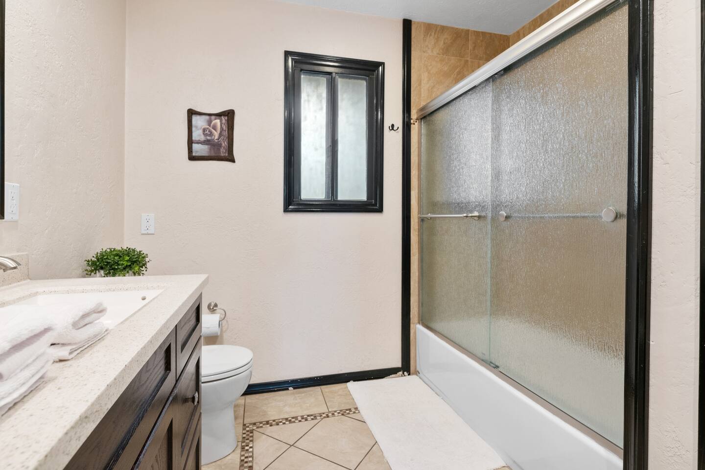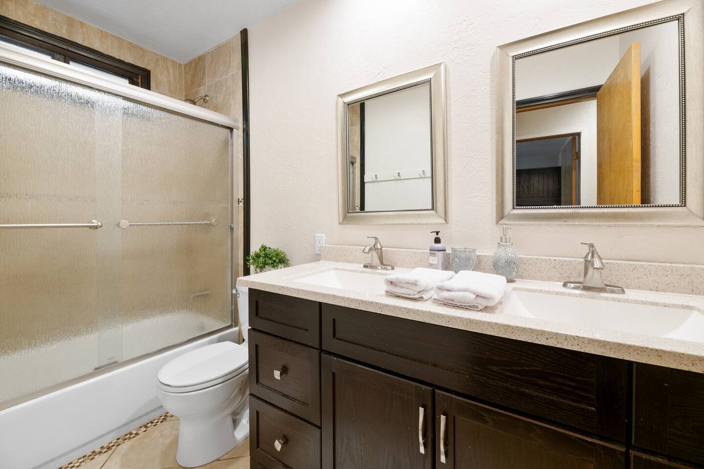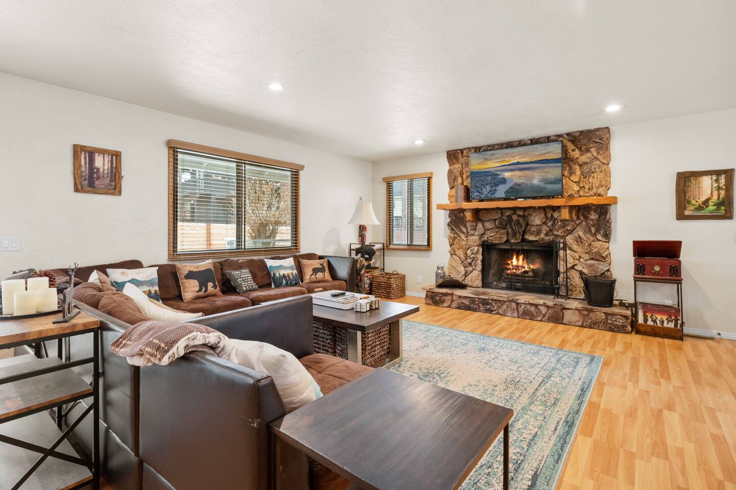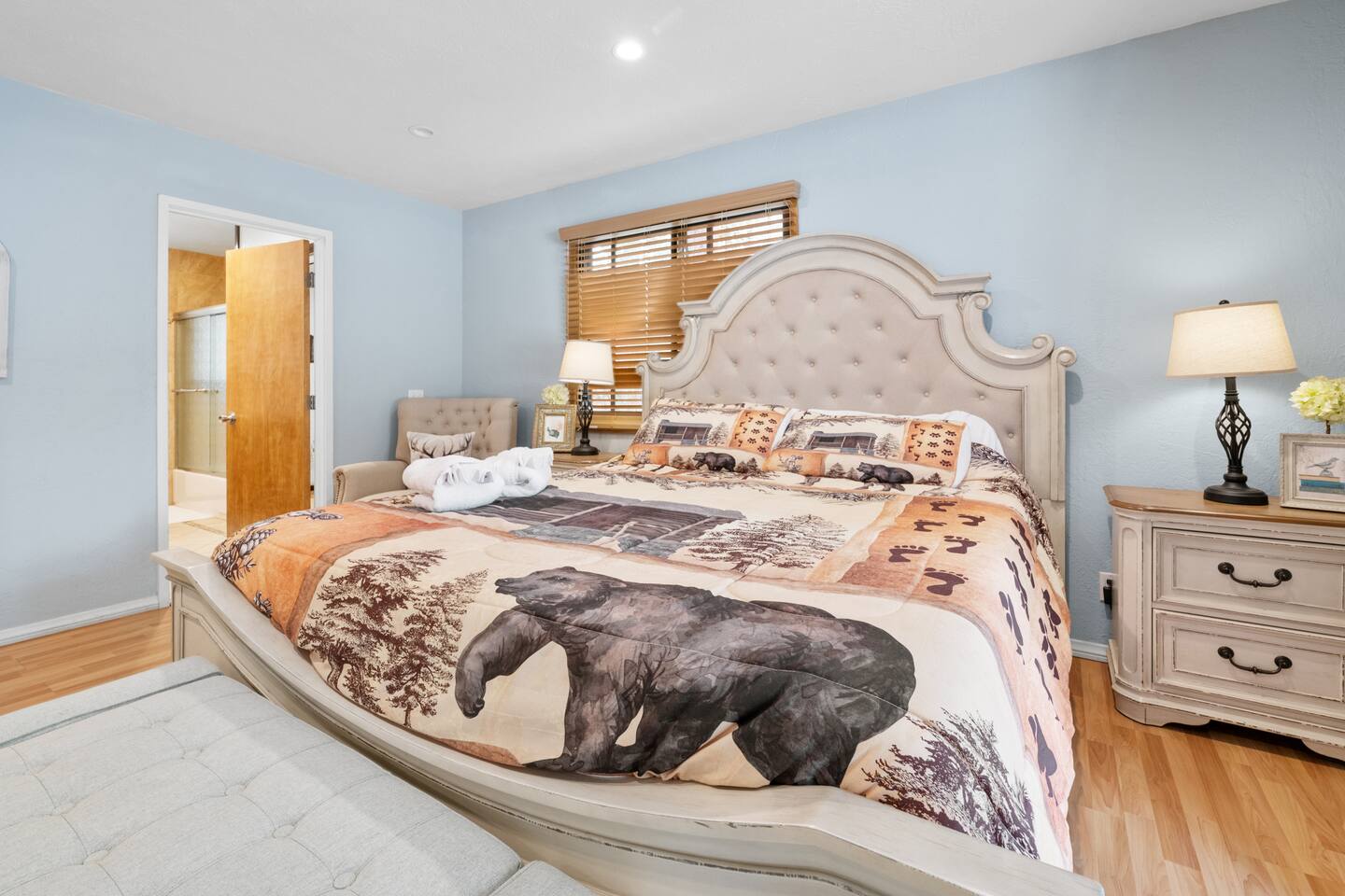 Please note that City of Big Bear Lake considers infants as part of total guest for maximum occupancy. We are only allowed to have maximum 7 people per booking. Here Are A Few Kind Words From Our Past Guests: “I couldn't ask for a more thoughtful host. The location is central to everything and the home is literally stocked with every need imaginable.” - Jennifer “One of the best experiences I’ve had staying in an Airbnb.” - Jazmine “Bathrooms impeccably clean, plenty of hot water and even the odds and ends one may have forgotten.” - Alex ☆☆ BEDROOMS ☆☆ The cottage has three bedrooms, with five beds in total to accommodate up to 7 guests. The master bedroom includes a king-sized bed with a high-end mattress, comfortable linens, and fluffy pillows. Use the large closet to unpack your wardrobe, and should you be traveling with your little bundle of joy, a Pack-N-Play is available. The room offers direct access to the front deck. The two other bedrooms both include stylish bunk beds with full and twin mattresses. All the beds have cozy linens, comfortable pillows, and comforters for colder nights. The large closets offer plenty of storage for your family's belongings. ☆☆ BATHROOMS ☆☆ The property’s two pristine bathrooms offer the choice of a refreshing shower or a relaxing bath after an activity-packed day discovering Big Bear. Each boasts a bathtub/shower combo and is stocked with essentials, such as shampoo, conditioner, body wash, and a hairdryer. ☆☆ KITCHEN ☆☆ The spacious kitchen has all the amenities you would need to prepare quick snacks and family feasts. At your disposal are a fridge, stove/oven, microwave, toaster, crock-pot, blender, numerous pots and pans, bakeware, dishware and utensils, excellent knives, cutting boards, and much more. The chef in your family will appreciate the large island and counter space. Basics such as spices have been provided to get you started. Enjoy meals at the dining table lit by a beautiful chandelier, or take your feast outdoors to the back patio under the twinkling string lights, there’s direct access to the deck from the kitchen. ☆☆ LIVING ROOM ☆☆ The main living area is gorgeous with a large open concept that extends from the kitchen and dining area. The living room has a fireplace, which you can enjoy from the comfortable couch with pillows and blankets to wrap yourself with when needed. There’s a large smart TV for the best movie watching experience, an Alexa when you feel like putting on some tunes, and high-speed wireless internet to serve all your connection needs. ☆☆ GAME ROOM ☆☆ Have fun in the game room with match in ping-pong or playing darts. ☆☆ OUTSIDE AREA ☆☆ The luxurious feel of the cottage doesn’t end indoors! The cottage is surrounded by a spacious patio offering multiple seating areas, a BBQ grill for feasts, string lights to set the mood, and, possibly as a cherry on top, a hot tub to relax in even on a colder evening. Take your outdoor experience even further to the lake, or wherever the mood leads with the inflatable paddleboard, bicycles, and some portable folding chairs to enjoy some fresh air. ☆☆ CENTRAL LOCATION ☆☆ Just minutes away from everything Big Bear has to offer! Ski resorts, grocery stores, CVS pharmacy, Starbucks, and the Village are all 2-7 minutes away from this centrally located cottage in quiet, desirable Foxfarm neighborhood. ★☆ Book Today & Let Us Take Care Of You In Big Bear Lake! ☆★