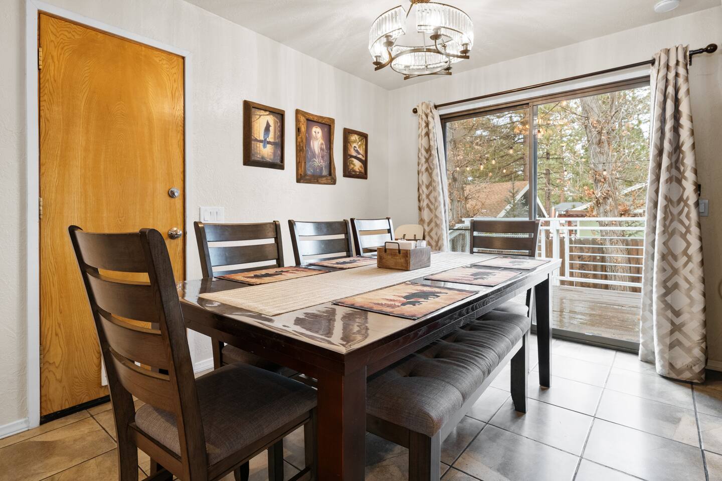 When you stay here, the entire cottage is for your private use. Feel free and enjoy the high-speed wireless internet and access to Amazon Prime Video, Disney+, HBO Max, Hulu, and Netflix on the large smart TV (with your own logins). Onsite washer and dryer available for your travel needs. The property’s attached garage plus its large driveway can comfortably accommodate up to 3 vehicles. There’s a Level 2, 50 amp EV charger on the property as well. You are free to use the annual Adventure Pass for parking when you visit the national forest. Note that check-in is possible from 4 pm onward, while check-out is conducted by 11 am. You will be offered a keypad code to enter the property upon arrival. Additionally, as the City of Big Bear Lake requires in-person check-in, the property housekeeper will come by on the check-in date to confirm the booking information matches your government ID. Unfortunately, smoking is prohibited on the property, with smoking being an option on the street outside of the property lines. No parking on the street is allowed, and the number of guests on the property mustn’t exceed the number of guests the cottage was rented for. KEY FEATURES ☀ 3 bedrooms; 1 king-sized bed, 2 full/twin bunk beds ☀ 2 bathrooms; bathtub/shower combos ☀ Spacious fully-equipped kitchen with attached dining area ☀ Living room directly connecting to the kitchen ☀ High-speed wireless internet + Smart TV ☀ Game room with pingpong table and darts ☀ Washer and dryer ☀ Big deck area outdoors with multiple seating areas, BBQ grill, hot tub ☀ Access to paddleboard, beach cruiser bicycle, folding chairs ☀ Electric vehicle charger ☀ Central location to ski resorts, grocery stores, and the Village ☀ Great views of the surrounding forest